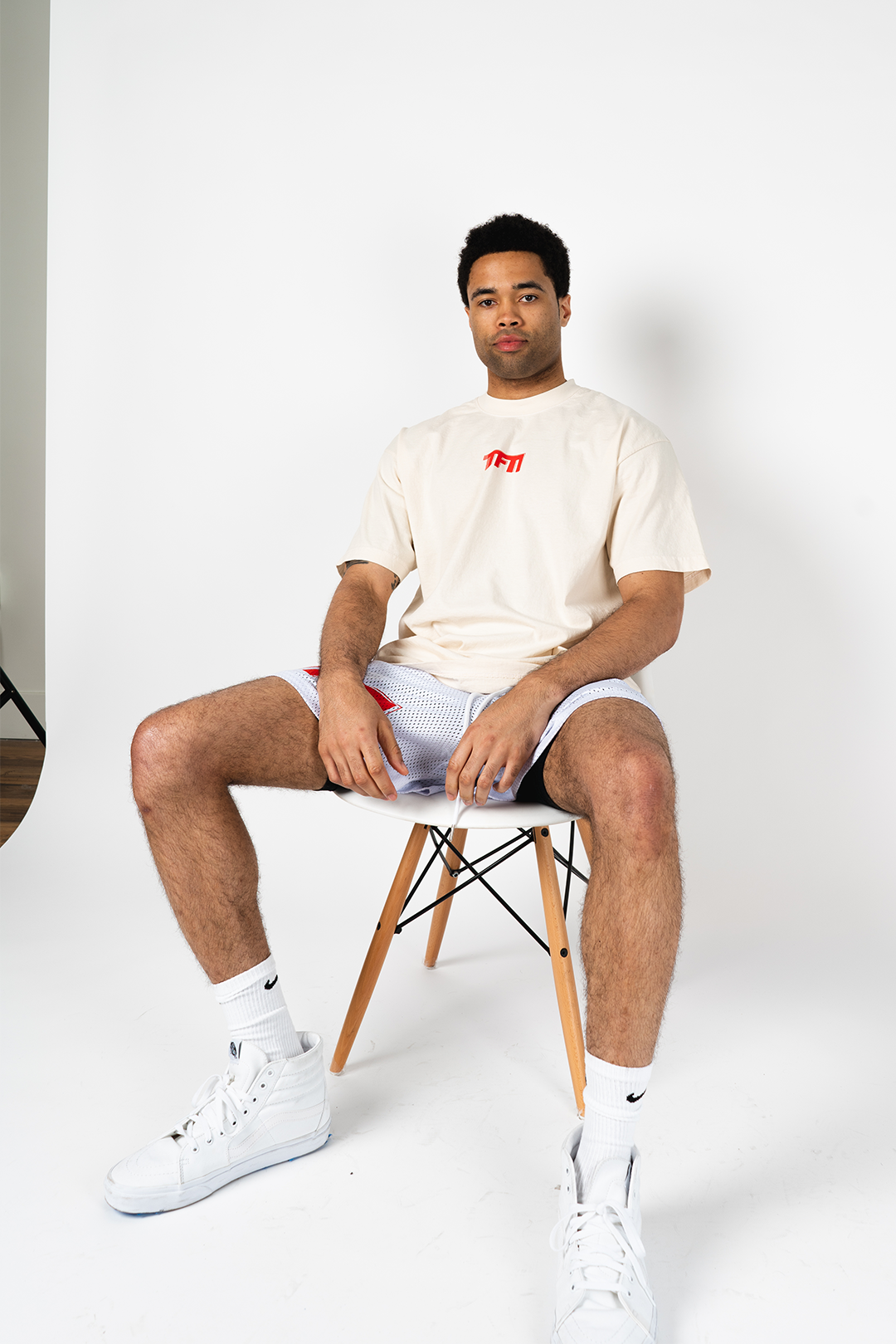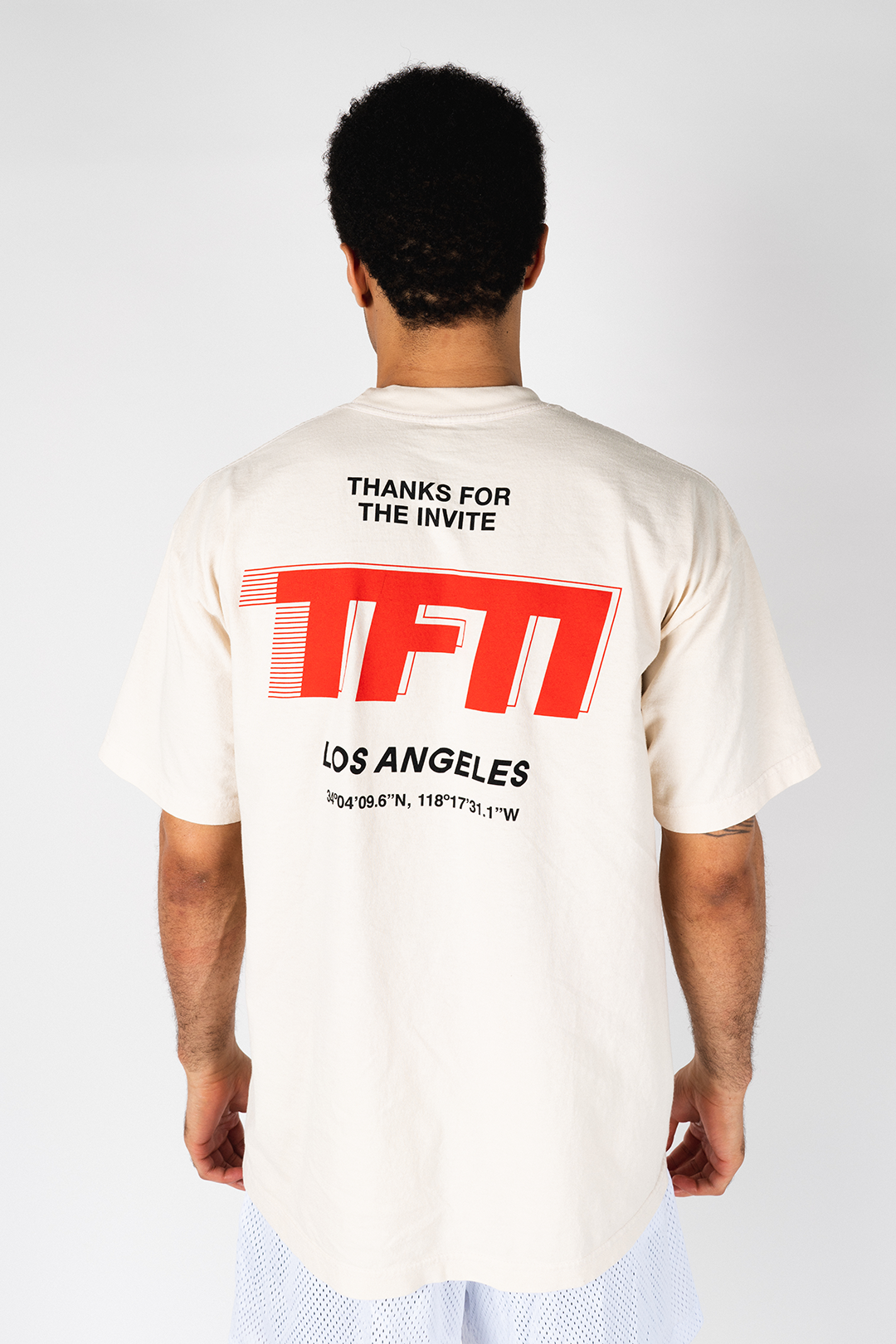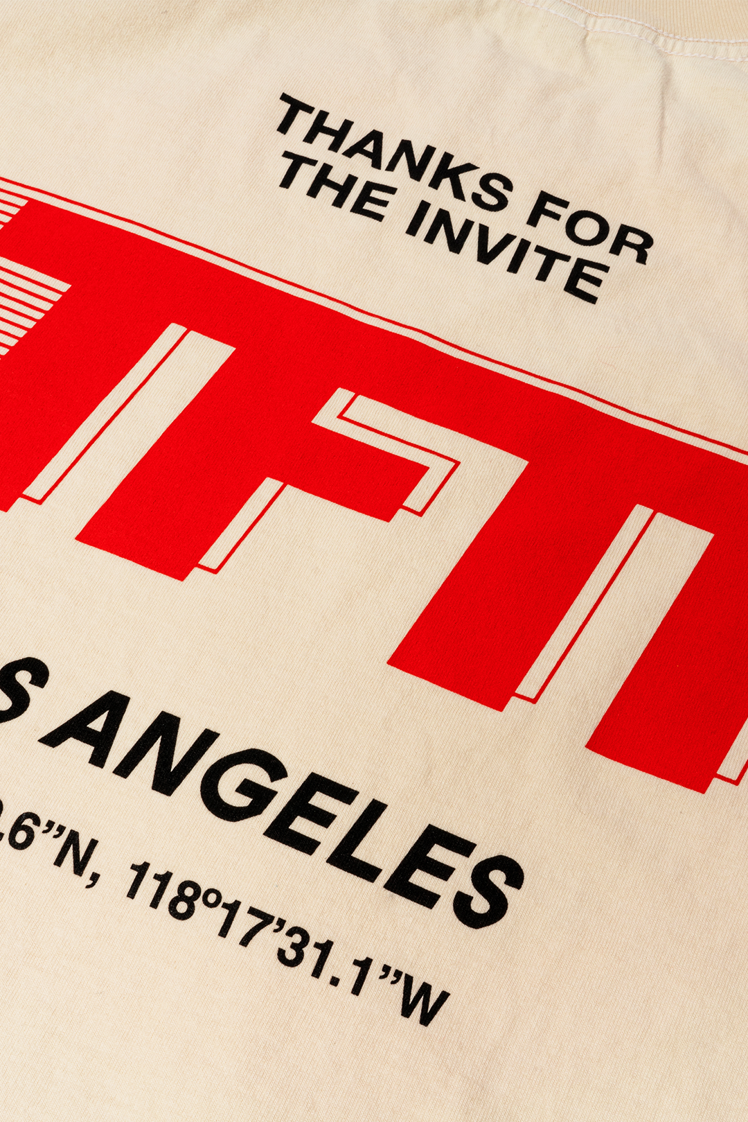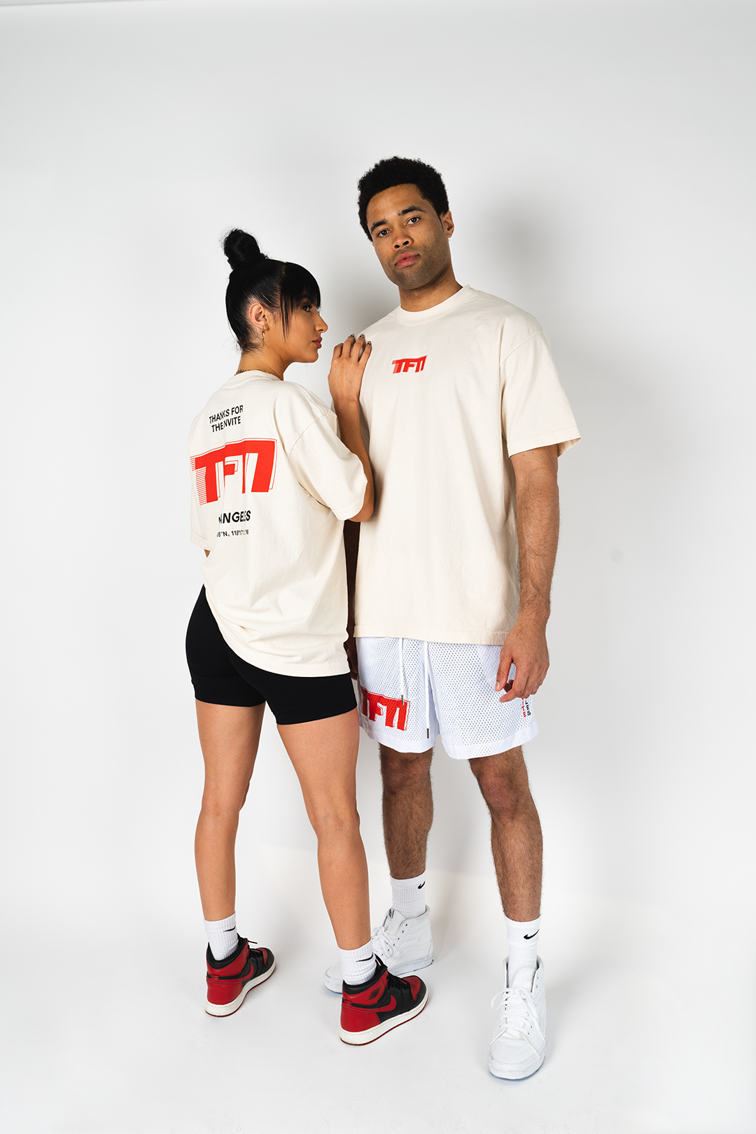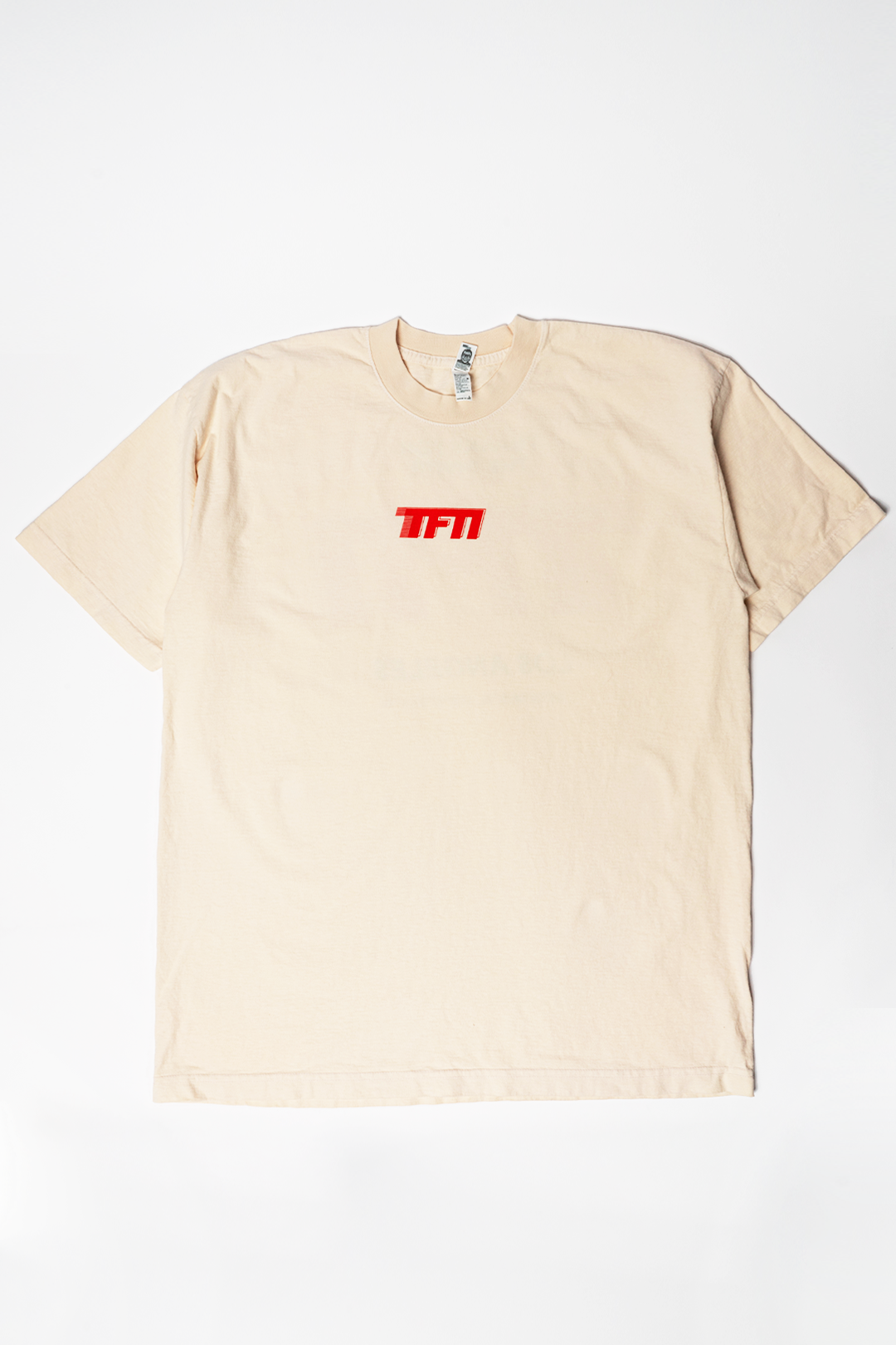 - CREAM SHIRT WITH RED/BLACK LOGO ON FRONT AND BACK